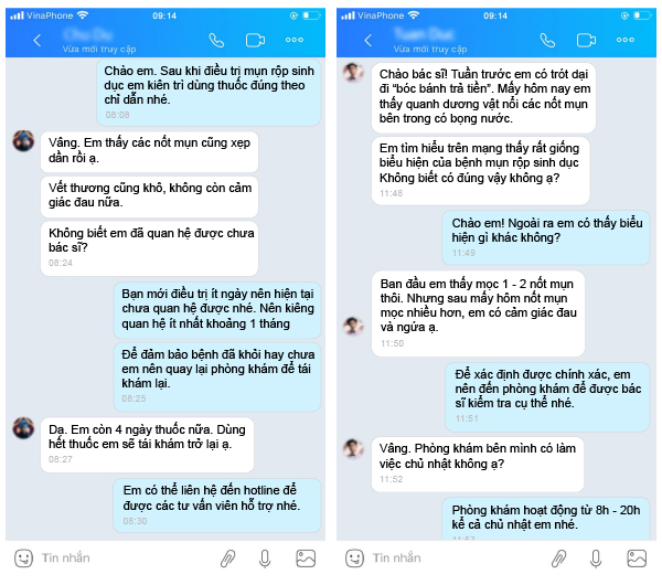 Chuyên khoa bệnh xã hội phòng khám đa khoa Vĩnh Yên đã thực hiện khám và điều trị cho nhiều trường hợp mọc mụn ở vùng kín. Nhận được phản hồi tích cực từ phía người bệnh: