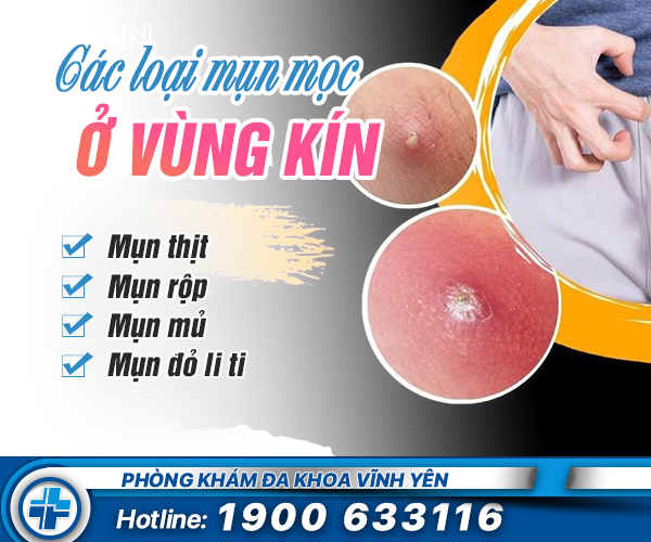 Theo các bác sĩ chuyên khoa bệnh xã hội phòng khám đa khoa Vĩnh Yên cho biết tình trạng mụn vùng kín phần lớn do mắc các bệnh lý viêm nhiễm nam khoa, phụ khoa hoặc bệnh xã hội lây qua đường tình dục. Mỗi bệnh lý sẽ có đặc điểm nốt mụn khác nhau. Các loại mụn mọc ở vùng kín thường gặp như: